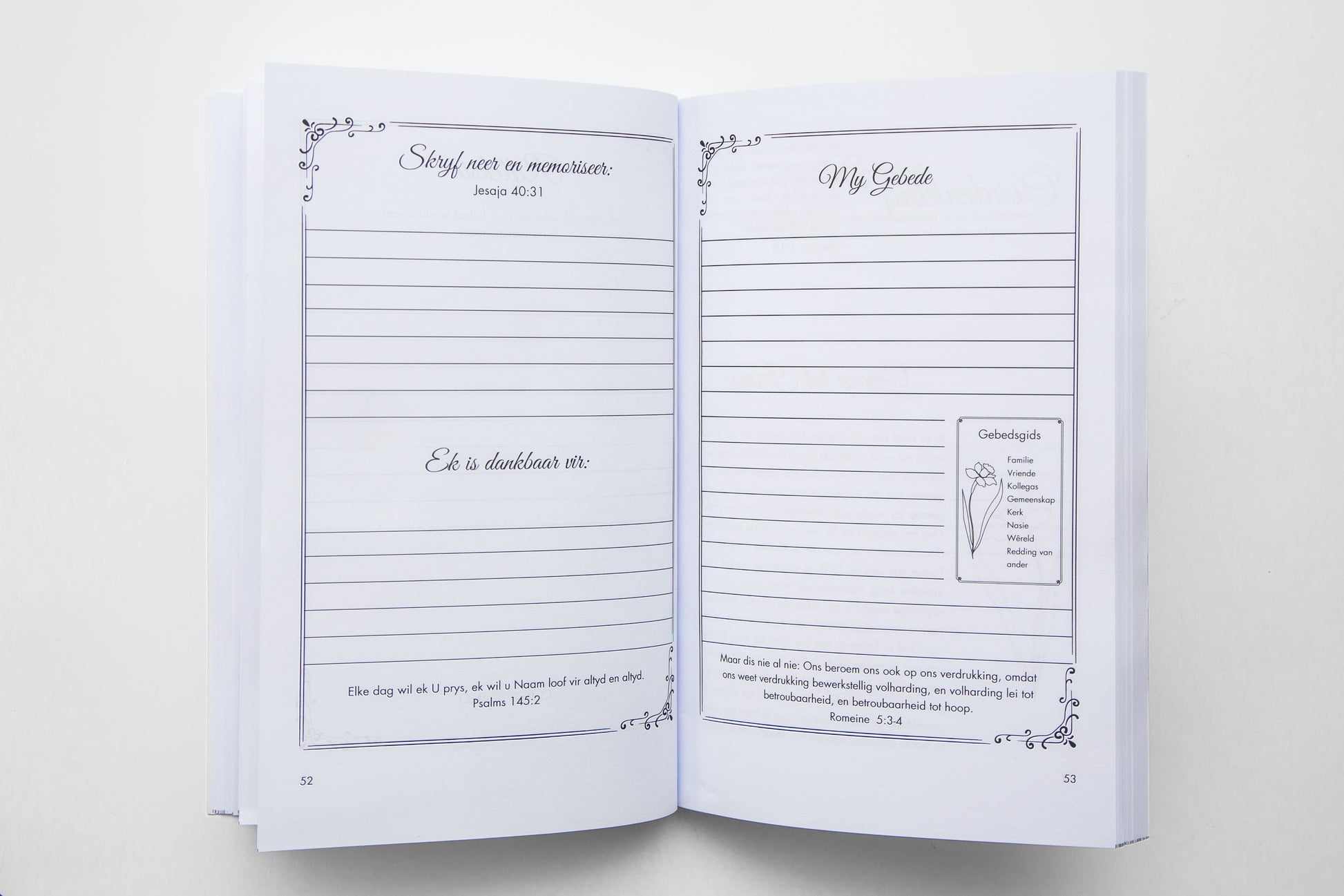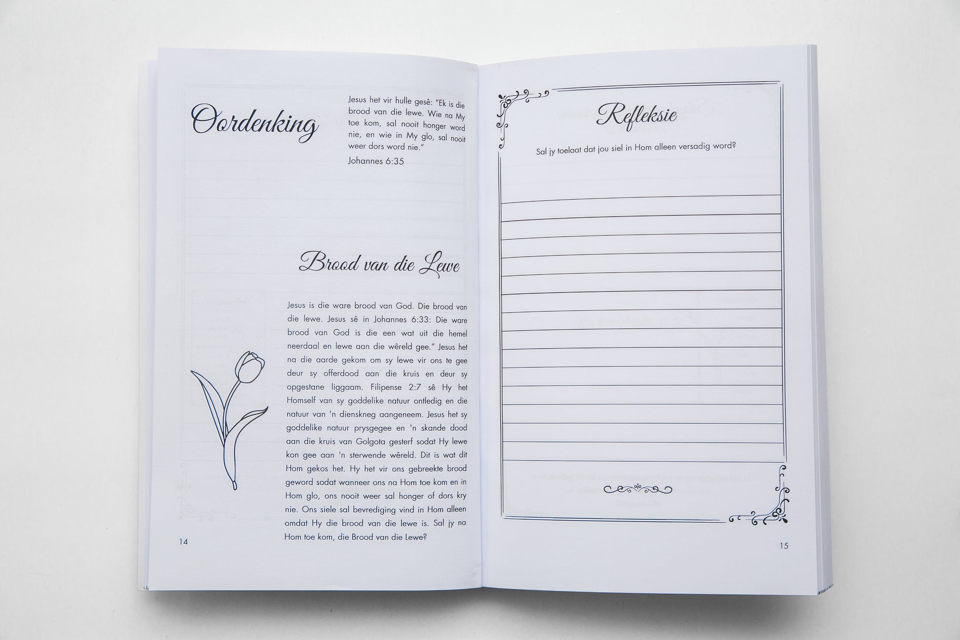 Hierdie transformerende Oordenkingsjoernaal in Afrikaans het 52 weeklikse oordenkings met skrif en aanwysings om jou te lei tydens jou tyd van gebed en nadenke.